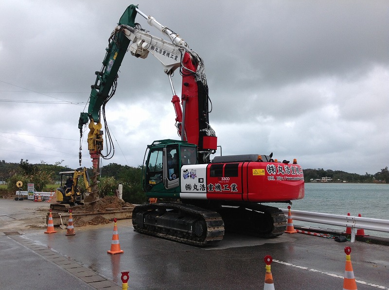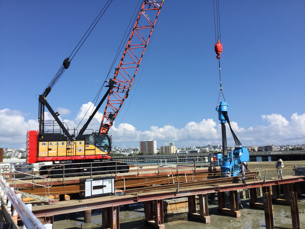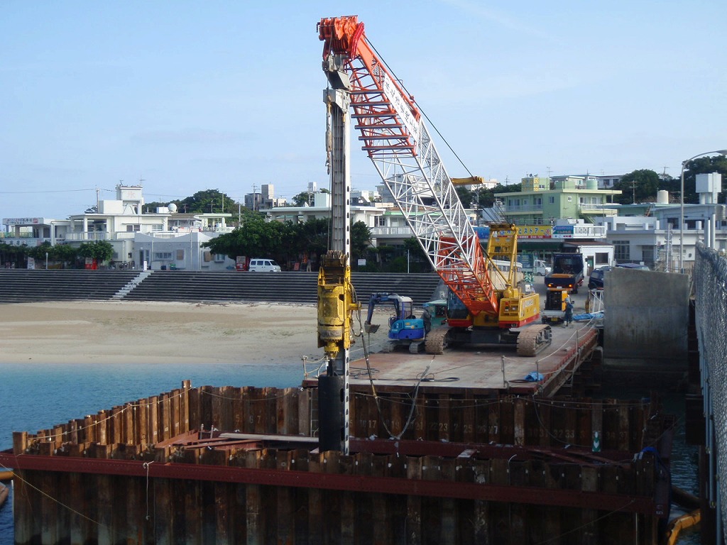 岩盤掘削工事、抑止杭工事、各種山留め基礎工事 場所打ち杭工事、仮浅橋工事、仮桟台工事、クレーンリース