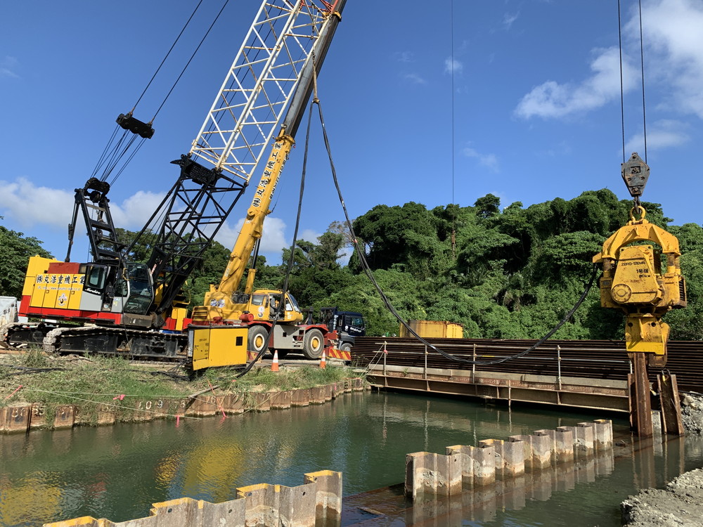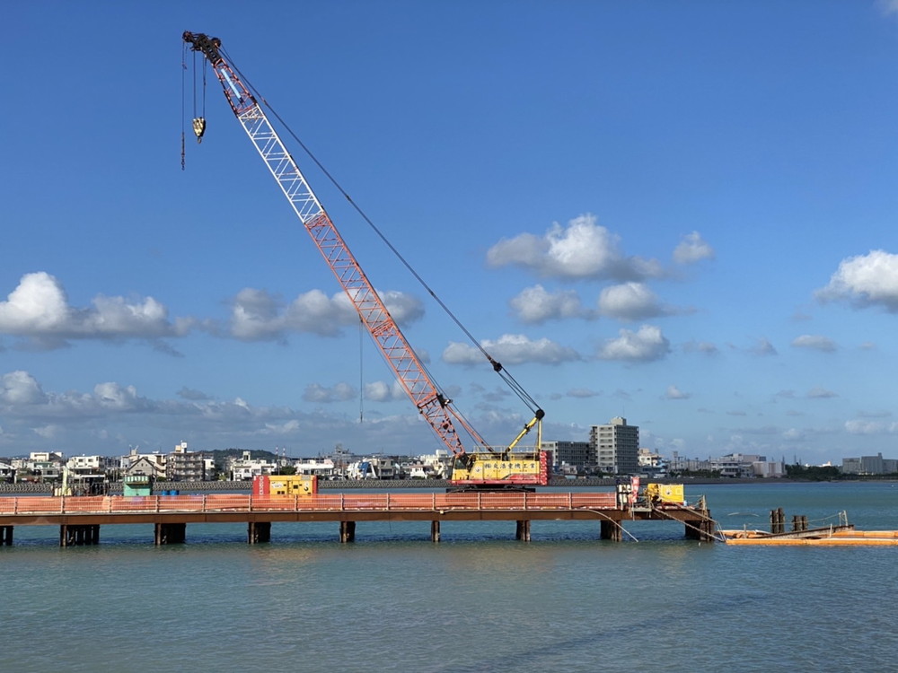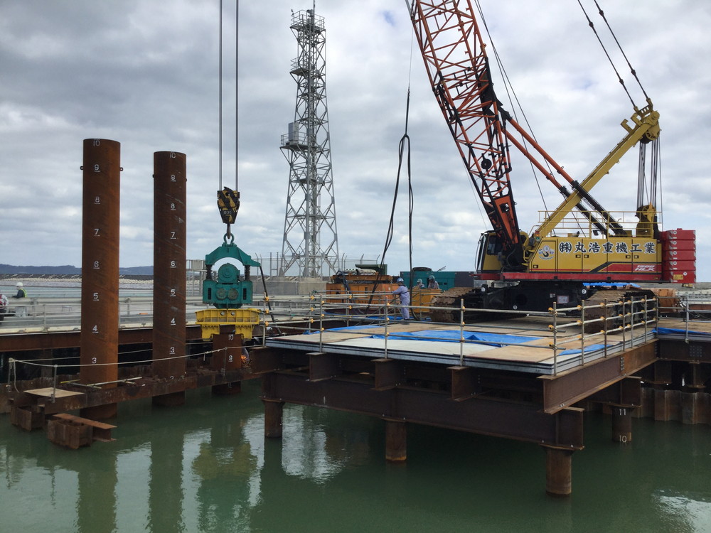 鋼岩盤掘削工事、抑止杭工事 仮浅橋工事、仮桟台工事