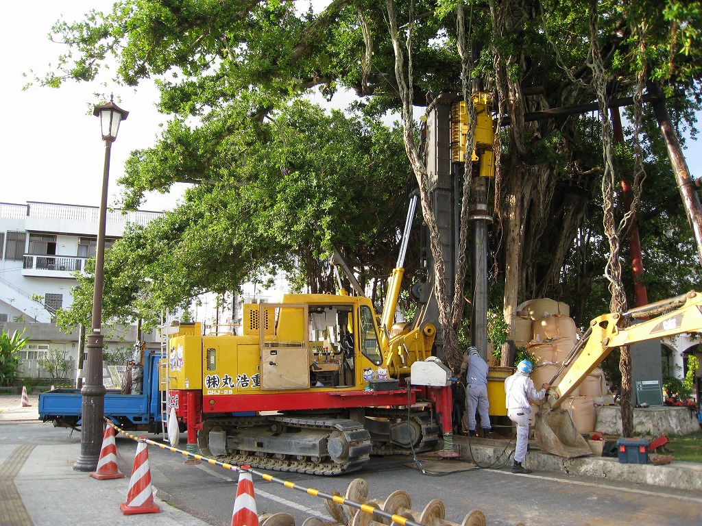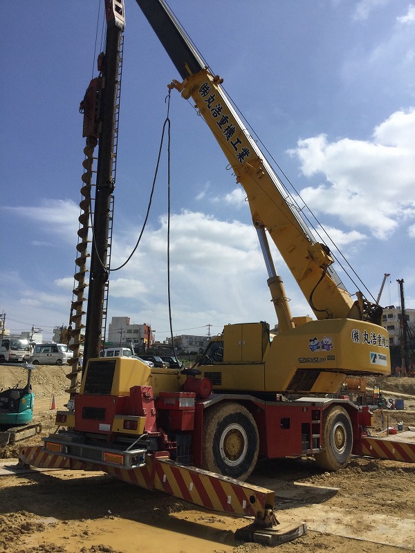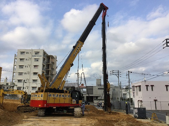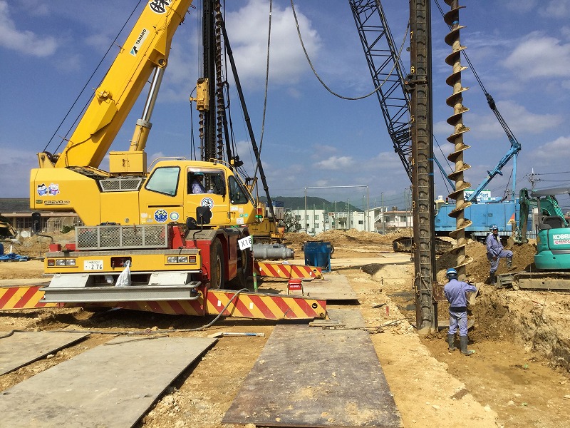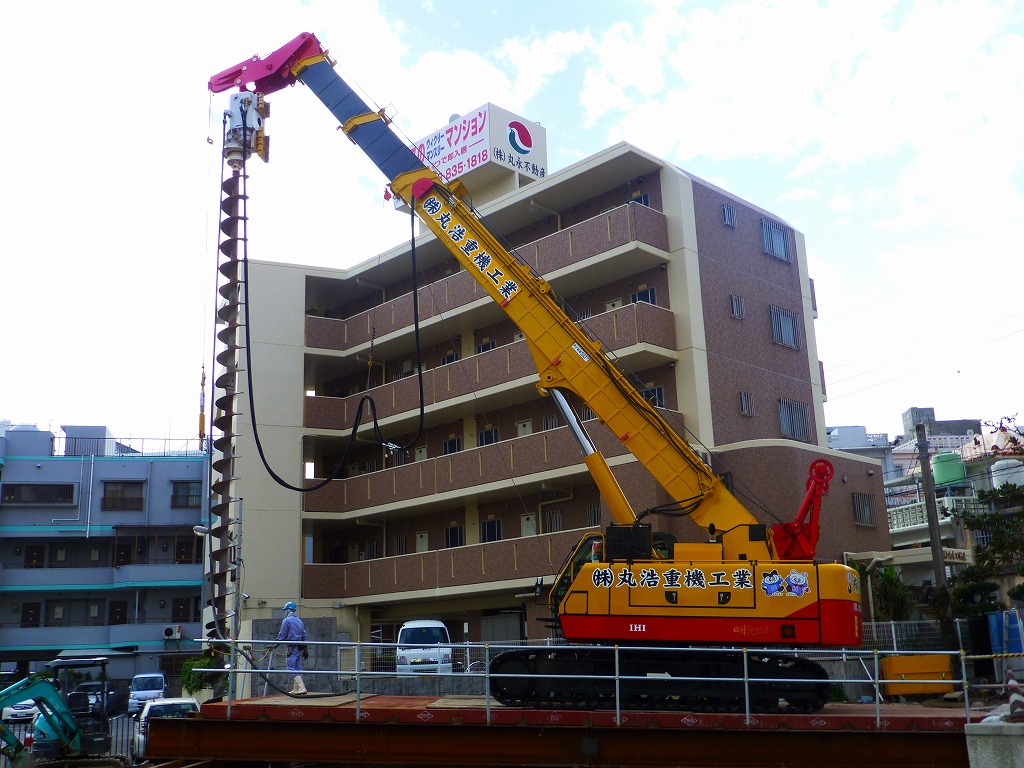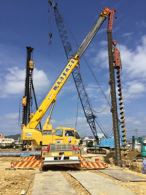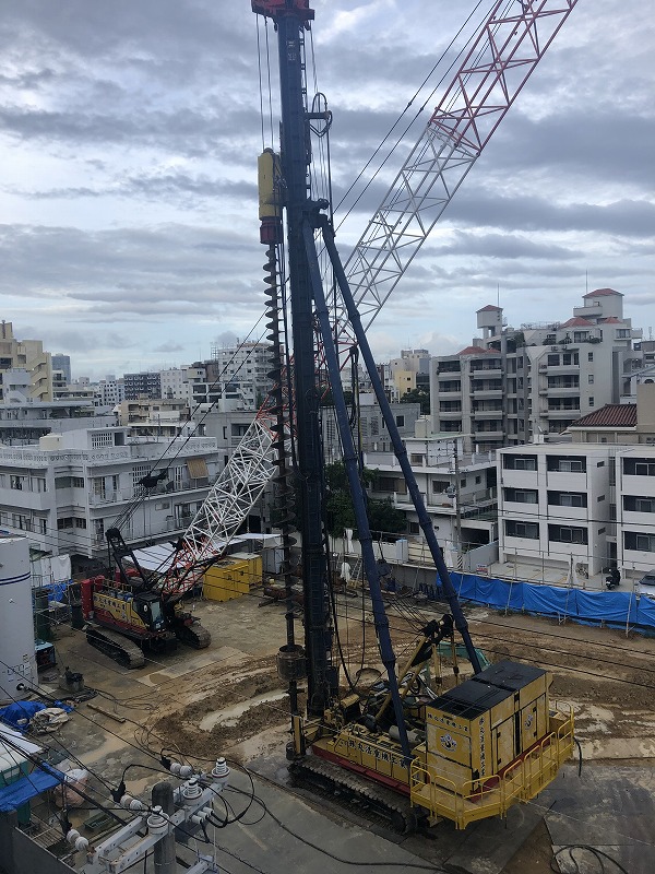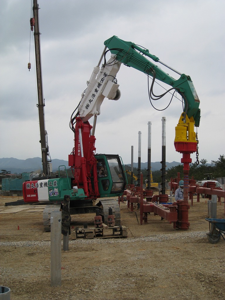 岩盤掘削工事、抑止杭工事、PHCパイル工事 ドーナツオーガー掘削工事